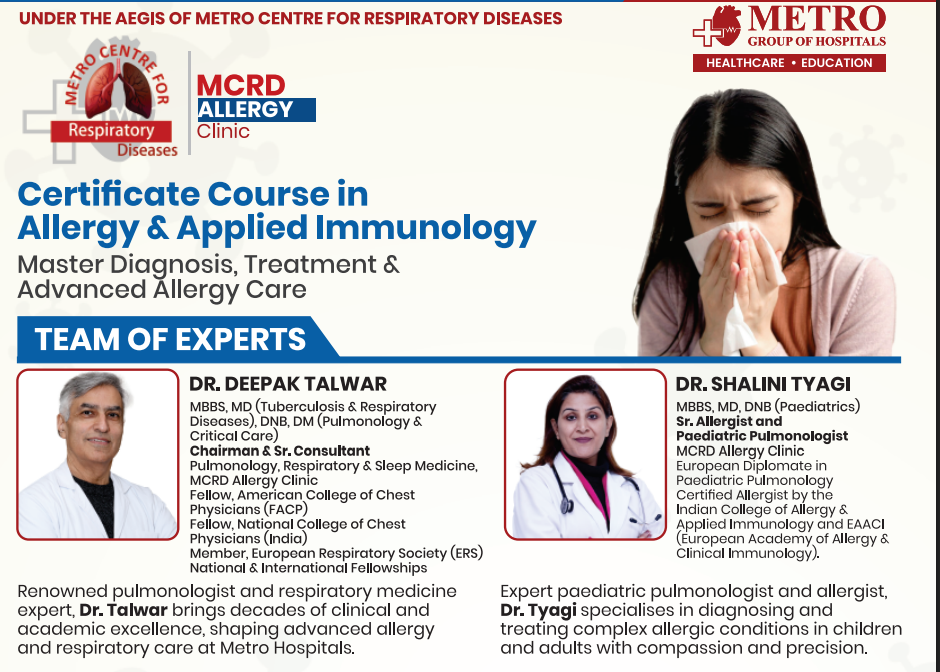 Senior Consultant, Metro Centre for Respiratory Diseases, Metro Group of Hospitals, Noida (UP)