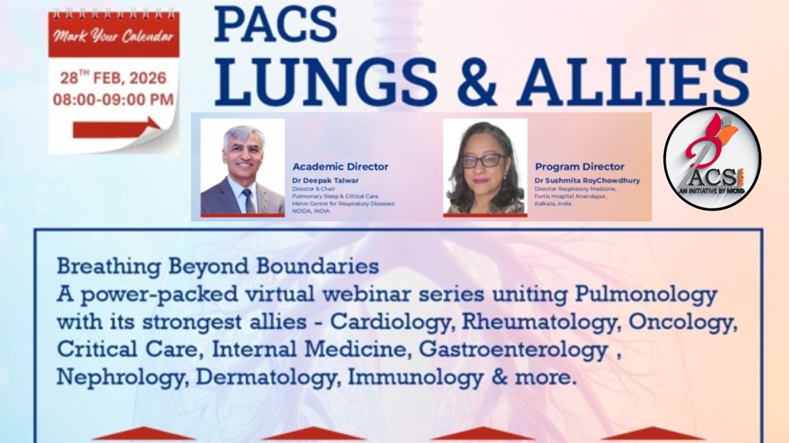 The Foundation for Pulmonary Allergy, Critical Care and Sleep Medicine (PACS Foundation) is a clinician-led, academic-first organization dedicated to advancing medical education, research, and community awareness. Through our nationwide initiatives, we aim to strengthen clinical practices, empower healthcare professionals, and improve patient outcomes in respiratory medicine.