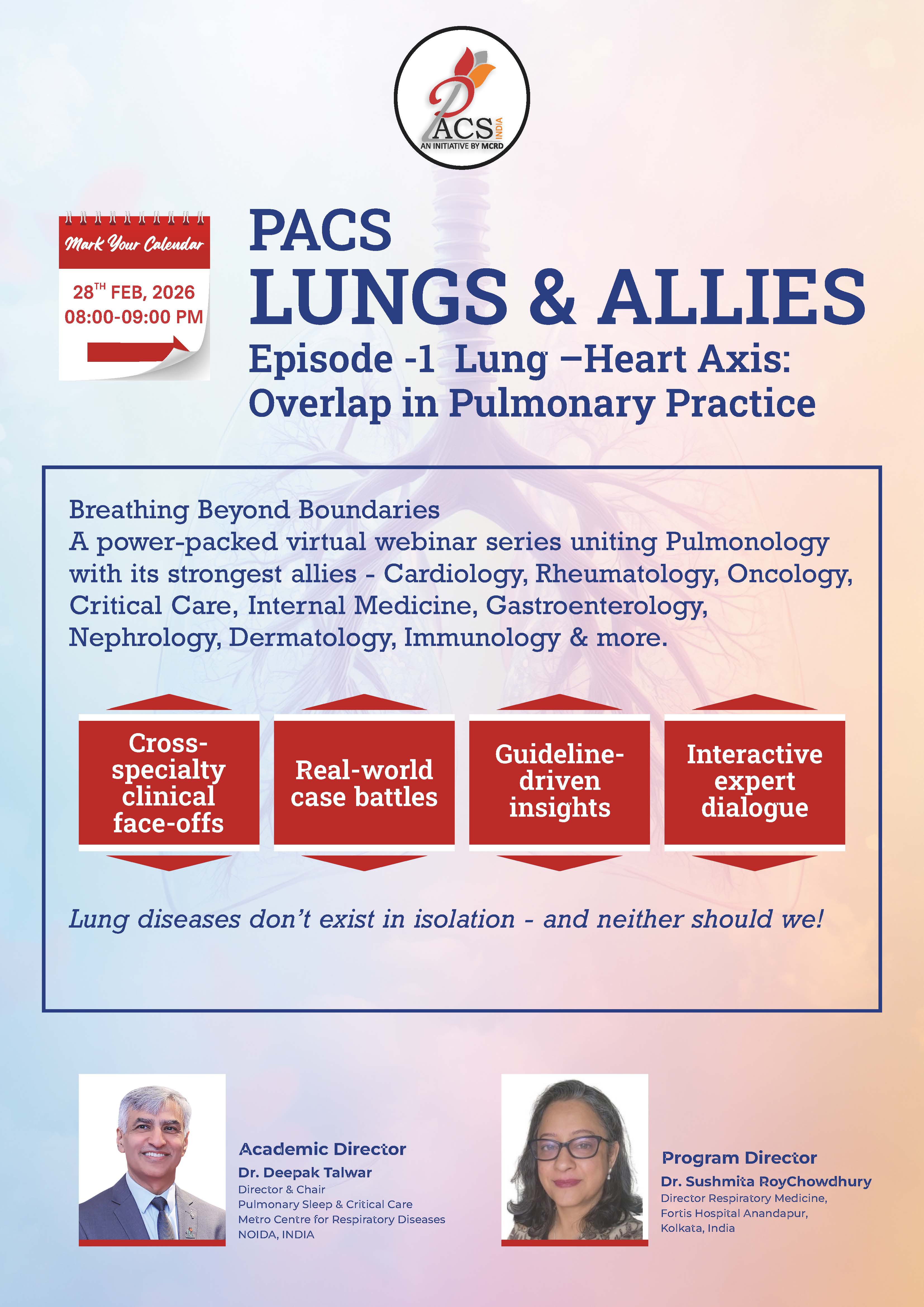 The Foundation for Pulmonary Allergy, Critical Care and Sleep Medicine (PACS Foundation) is a clinician-led, academic-first organization dedicated to advancing medical education, research, and community awareness. Through our nationwide initiatives, we aim to strengthen clinical practices, empower healthcare professionals, and improve patient outcomes in respiratory medicine.